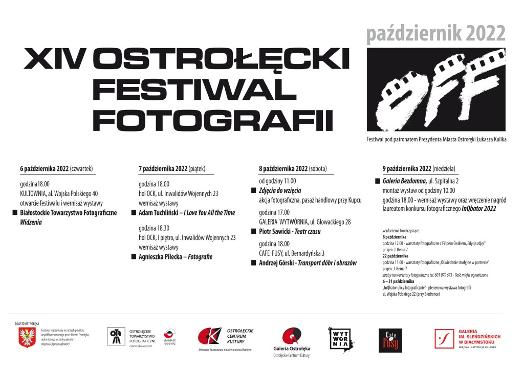 Przed nami XIV edycja Ostrołęckiego Festiwalu Fotografii OFF. Będzie to cykl kilku wydarzeń związanych z fotografią i jej różnymi wizjami. W programie m.in. kilka wystaw, warsztaty, happening oraz “Galeria Bezdomna”.
