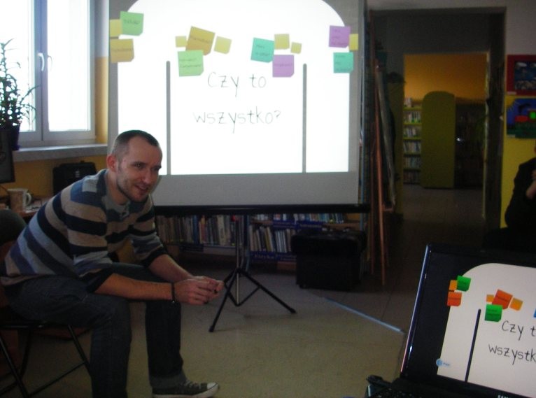 W spotkaniu w bibliotece w Rzekuniu uczestniczyli uczniowie z III klasy Gimnazjum w Ołdakach. Dowiedzieli się, jak wygląda praca młodego profesjonalisty, czym się zajmuje, co go inspiruje, jak rozwijała się jego kariera zawodowa a także co spowodowało, że wybrał taką ścieżkę zawodową. Wspólnie rozmawiali o nowych zawodach i zastanawiali się, które z nich są najbardziej przyszłościowe. Całość miała charakter warsztatowy – były quizy, pytania, wspólne ćwiczenia.