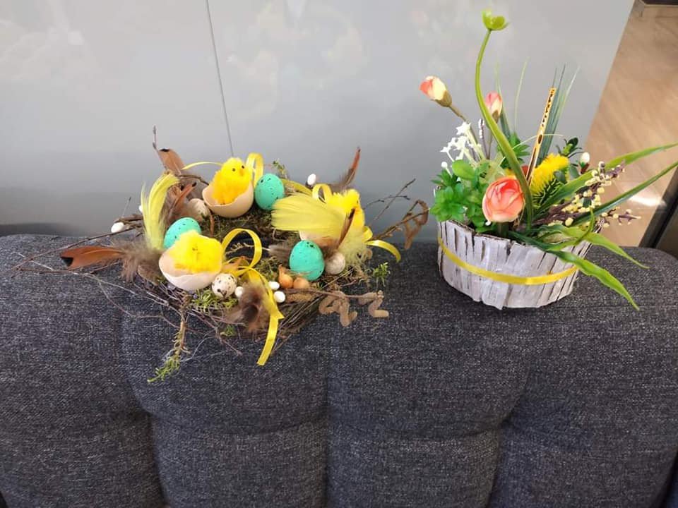 Efektem ich starań są wielkanocny stroik w koszyczku i wianek wielkanocny.