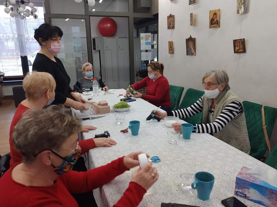 W Dziennym Domu w Rzekuniu zapanowała świąteczna atmosfera. Seniorzy wykonywali świąteczne dekoracje.