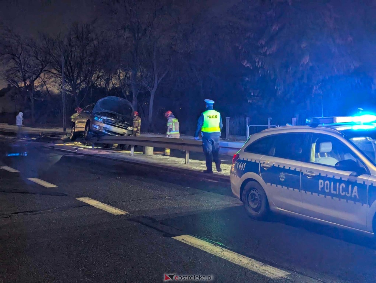 Na miejsce wypadku wezwano również straż pożarną. Z uszkodzonego pojazdu wyciekały płyny eksploatacyjne, które mogły stanowić zagrożenie dla innych użytkowników drogi. Strażacy zabezpieczyli teren, neutralizując niebezpieczne substancje i zapobiegając ich dalszemu rozprzestrzenianiu się.