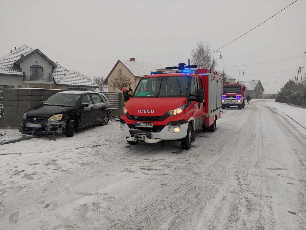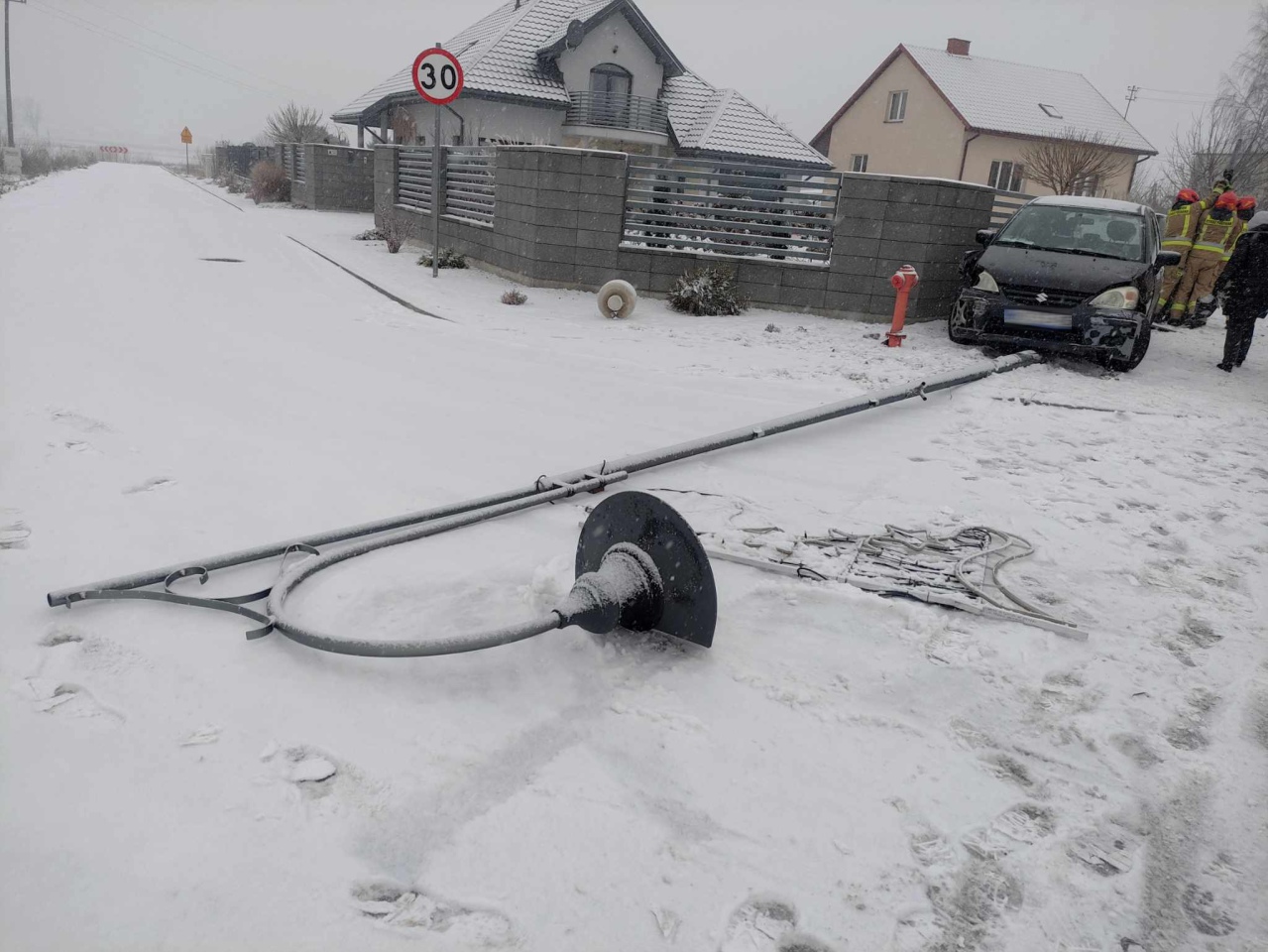 Kierujący autem osobowym 68-letni mieszkaniec powiatu ostrołęckiego na łuku drogi stracił panowanie nad pojazdem, zjechał na pobocze a następnie uderzył w ogrodzenie prywatnej posesji, znak i latarnię. Mężczyzna był trzeźwy, nie odniósł obrażeń.
