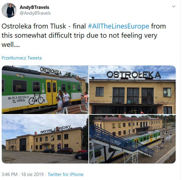 Pasję do kolejowych podróży realizuje na całym świecie. Do listy miast, jakie odwiedził, może dopisać także Ostrołękę. Mowa o Brytyjczyku Andym Brabinie, który niedawno przyjechał do Ostrołęki pociągiem.