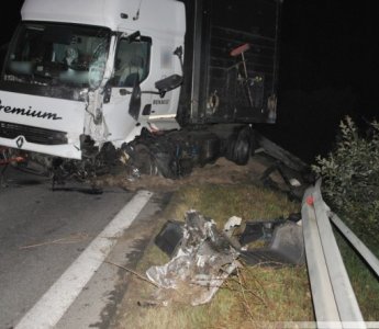 - Wczoraj około północy dyżurny augustowskiej Policji otrzymał zgłoszenie o wypadku drogowym na krajowej 61 w miejscowości Barszcze. Mundurowi natychmiast pojechali na miejsce. Tam wstępnie ustalili, że 22-letni kierując audi jechał w kierunku Rajgrodu. Nagle siedzący za kierownicą audi mieszkaniec Bargłowa Kościelnego najprawdopodobniej zjechał na lewą stronę jezdni zderzając się czołowo z jadącym z naprzeciwka ciężarowym renault z naczepą. W wyniku zderzenia 50-letni mieszkaniec Torunia, który kierował ciężarówką zjechał na prawą stronę, uderzył w barierę ochronną, po czym kolos zjechał na przeciwległy pas jezdni zderzając się z jadącym z przeciwnej strony fordem transitem. Niestety na skutek tego tragicznego wypadku zginęła 39-letnia obywatelka Węgier podróżująca fordem. Do szpitala trafiły jeszcze cztery osoby: kierujący audi, kierujący renault, 31-letni obywatel Rumunii, który kierował fordem i podróżujący z nim 35-letni obywatel Węgier. Pozostali dwaj pasażerowie transita 31-letni obywatel Słowacji i 19-letnia obywatelka Węgier nie doznali żadnych obrażeń. - informuje Komenda Wojewódzka Policji w Białymstoku
