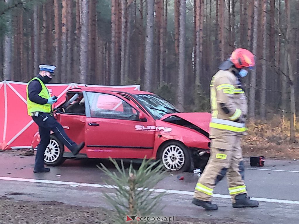 Niestety w wyniku wypadku śmierć na miejscu poniósł 35-letni mieszkaniec powiatu ostrołęckiego kierujący seatem. Podróżujący z nim 24-latek nie odniósł poważniejszych obrażeń.