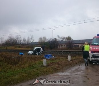 fot. eOstrołęka.plDo wypadku doszło około godziny 11:20 na niestrzeżonym przejeździe kolejowym w miejscowości Czarnowiec (gmina Rzekuń). Pod jadący pasażerski szynobus wjechał kierowca hyundaia. Z naszych nieoficjalnych informacji wynika, że koreańskim autem podróżowało starsze małżeństwo.