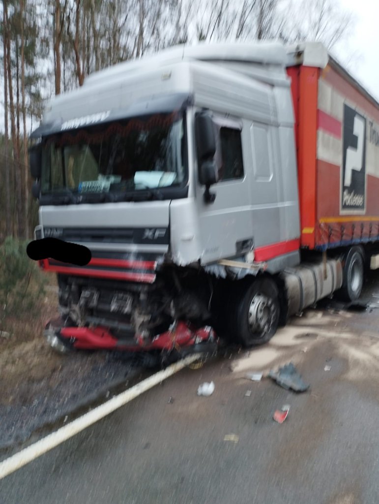 Do wypadku doszło na lokalnej drodze między Przasnyszem a Chorzelami. Na wysokości parkingu leśnego auto osobowe zderzyło się z ciężarówką.