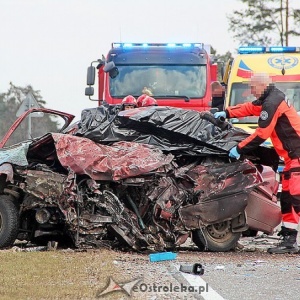 Śmiertelny wypadek na DK 61. Kierowca daewoo zginął po czołowym zderzeniu z tirem [ZDJĘCIA]