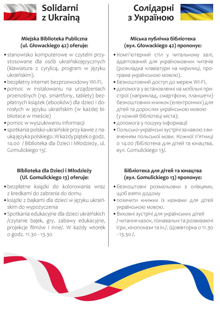 Miejska Biblioteka Publiczna przygotowała specjalną ofertę edukacyjną i integracyjną dla uchodźców z Ukrainy.