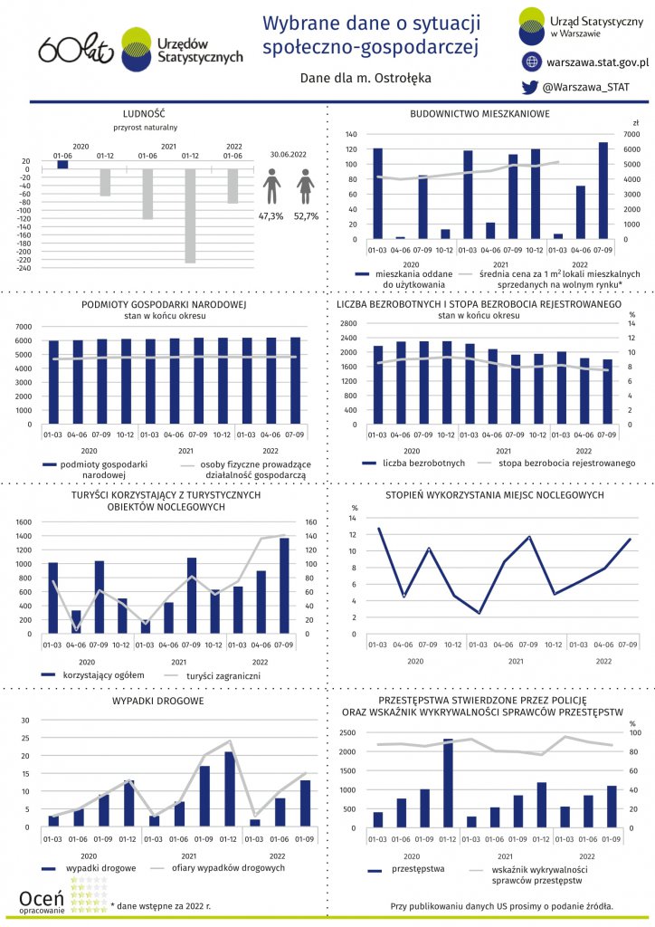 Stopa bezrobocia rejestrowanego (stan na 30.09.2022) wyniosła 7,5 proc. i jest niższa niż w tym samym czasie rok temu. Wzrósł za to, w porównaniu do zeszłego roku, przyrost naturalny. Z tym, że dalej jest ujemny i wynosi -3,42.