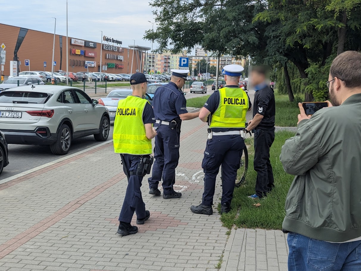 Naczelnik ostrołęckiej drogówki, nadkom. Robert Stypiński, stojąc gotów do rozmów z dziennikarzami, kątem oka dostrzegł na pobliskiej ścieżce rowerowej niecodzienny obrazek. Mężczyzna na rowerze, zamiast trzymać kierownicę, beztrosko wpatrywał się w ekran swojego telefonu. Widok tak absurdalny, że aż trudno było uwierzyć, stał się impulsem do szybkiej reakcji. Naczelnik w ostatniej chwili wydał rozkaz: „Zatrzymać!”.
