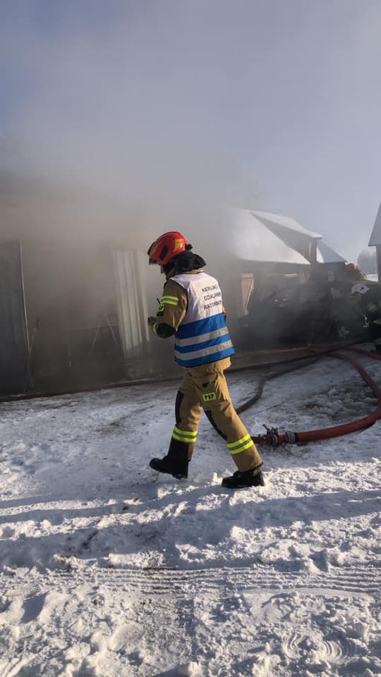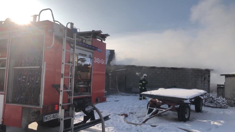 Pożar w garażu zgłoszono wczoraj przed południem. Gdy na miejsce dotarły pierwsze jednostki strażackie ogniem objęty był garaż i znajdujące się w niem sprzęty. Wśród nich znajdował się m.in. ciągnik rolniczy i samochód osobowy.