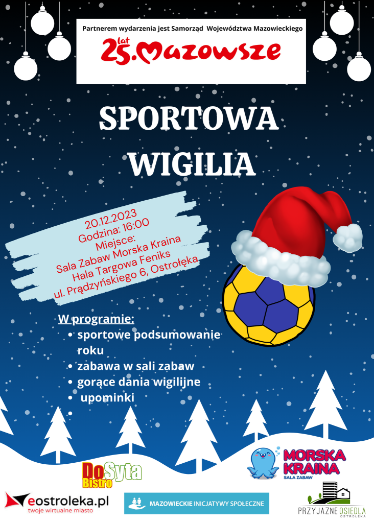 W środę 20 grudnia w Sali Zabaw Morska Kraina w Hali Targowej Feniks w Ostrołęce odbędzie się Sportowa Wigilia.
