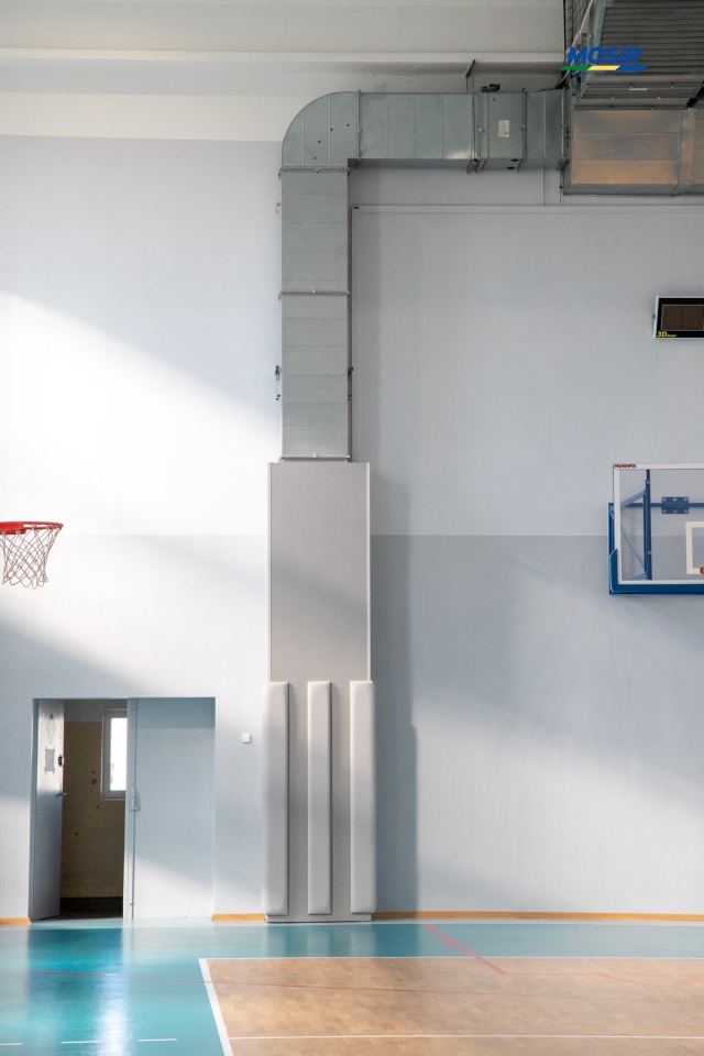 - Parkiet: kluczowym elementem było odświeżenie samej podłogi - parkiet poddano cyklinowaniu, lakierowaniu, a na koniec naniesiono świeże linie boiskowe. Wymieniono również listwy przypodłogowe.