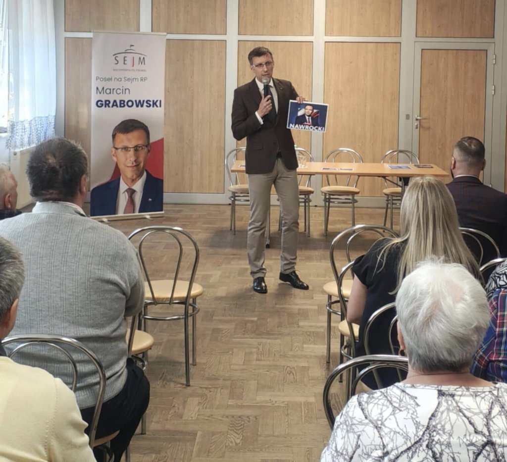 Poseł Grabowski podczas swojego wystąpienia poruszył szereg aktualnych tematów, wśród których szczególną uwagę poświęcił zbliżającym się wyborom prezydenckim. Parlamentarzysta wyraźnie zaapelował do zebranych o poparcie kandydatury Karola Nawrockiego w nadchodzących wyborach prezydenckich.