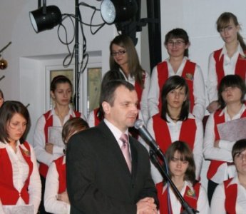 Chórzystki Cantileny z dyrygentem Henrykiem Gadomskim, fot. II LOCantilena wykonała 4 kompozycje: O zalotach oczarowanych, Gawot gramatyczny, Laudate Dominum i Suitę pieśni kurpiowskich. W składzie 35 osobowej grupy wystąpiło 16 pierwszoklasistek, dla których był to pierwszy tak prestiżowy występ.