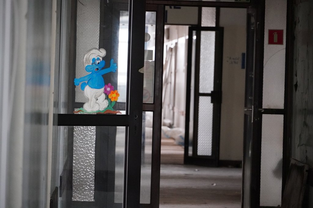 Budynek, który jeszcze 15 lat temu tętnił życiem, dziś spowija przeraźliwa cisza. Na początek rejestracja i idziemy w lewo na oddział dziecięcy, który mieścił się na parterze. Tu utrzymane są dość dobrze ścienne malunki, które jasno wskazują, że leczyły się tu dzieci. To chyba najbardziej charakterystyczny oddział...