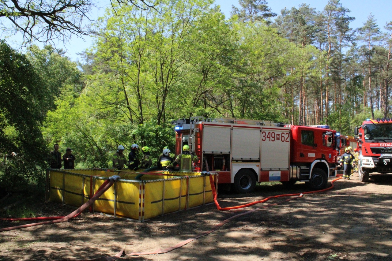 Kilkanaście zastępów strażackich w akcji w lesie w Parciakach. Działania związane były z manewrami doskonalącymi umiejętności strażaków w walce z pożarami lasów. Scenariusz ćwiczeń zakładał pożar lasu na obszarze jednego hektara.