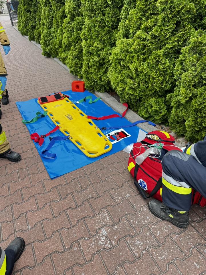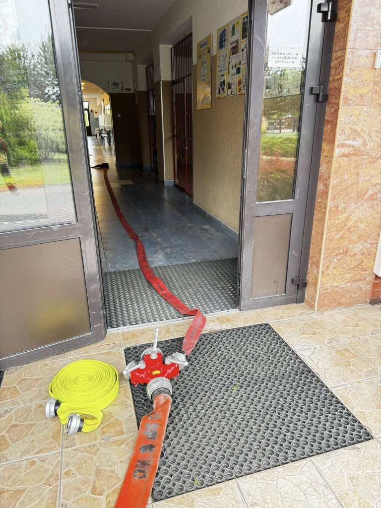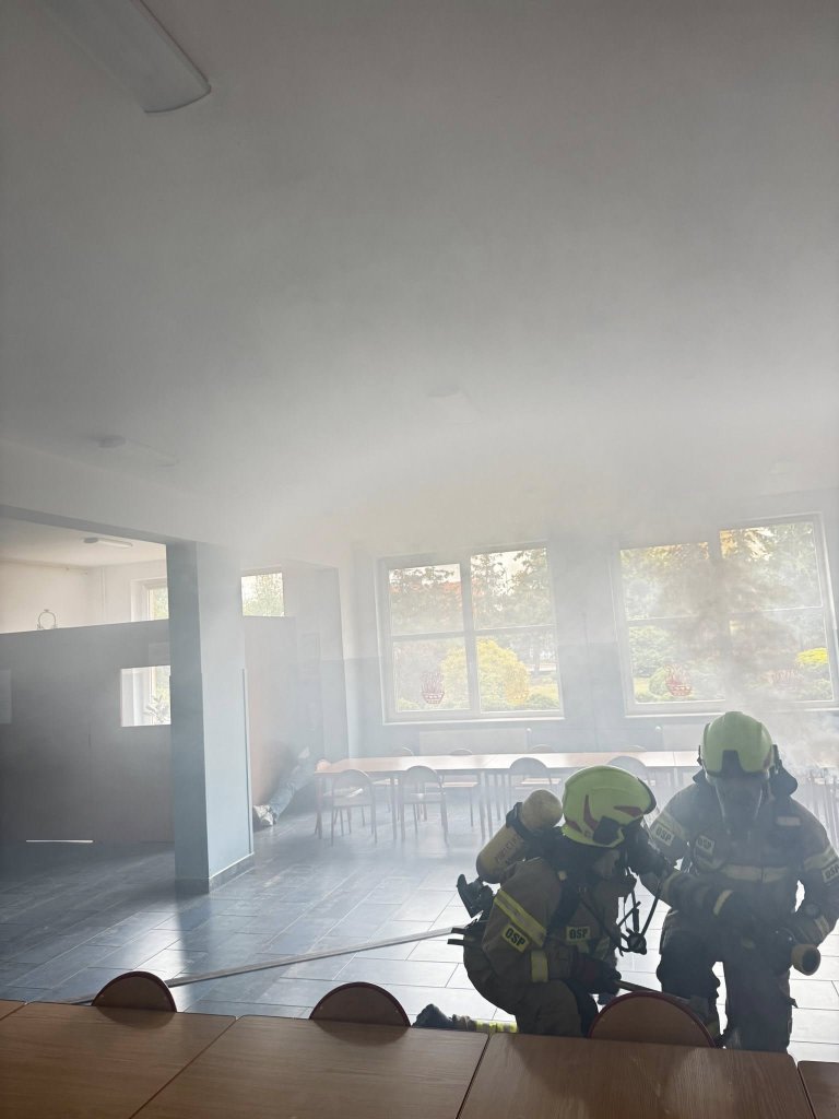 Na miejsce zdarzenia natychmiast zadysponowano dwa zastępy straży pożarnej. Strażacy, wyposażeni w specjalistyczne aparaty ochrony dróg oddechowych, ewakuowali z budynku jedną osobę poszkodowaną. Do ugaszenia symulowanego pożaru użyto trzech prądów gaśniczych.