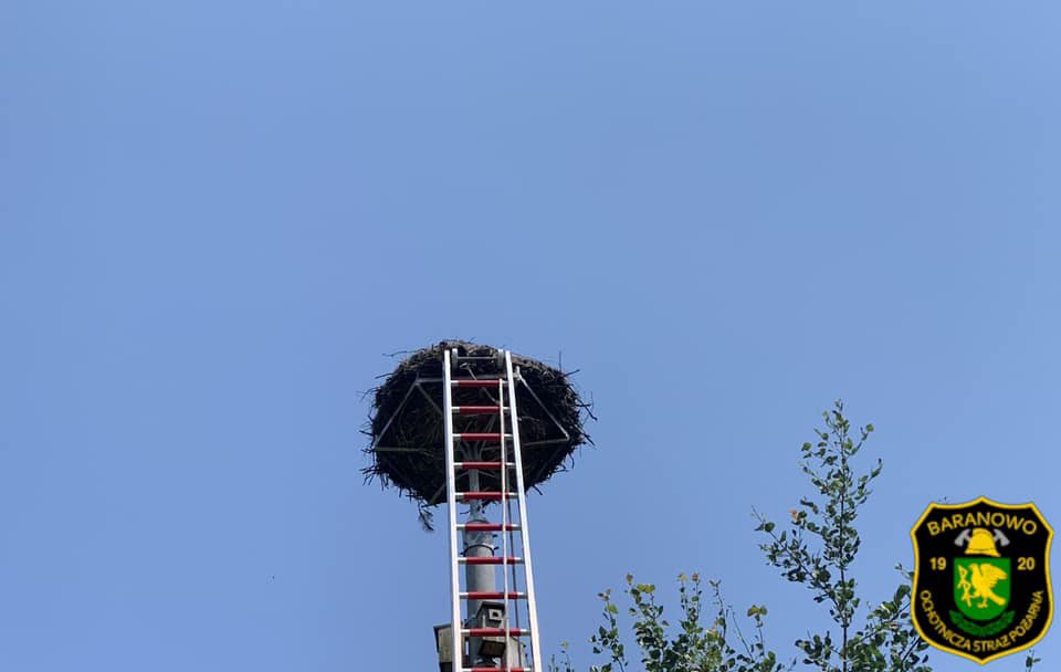 Naszym zadaniem było bezpieczne przetransportowanie do gniazda bociana, przez strażaka zabezpieczonego w podstawowy zestaw wysokościowy. Zadysponowano zastęp GBA OSP Baranowo.