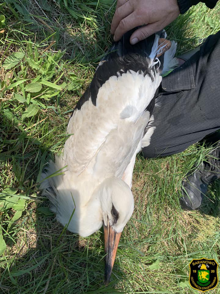 Do zdarzenia doszło przy ulicy Słonecznej w Baranowie. Strażacy ochotnicy z miejscowej jednostki OSP pomagali młodemu bocianowi, który wypadł z gniazda po nieudanej próbie nauki latania.