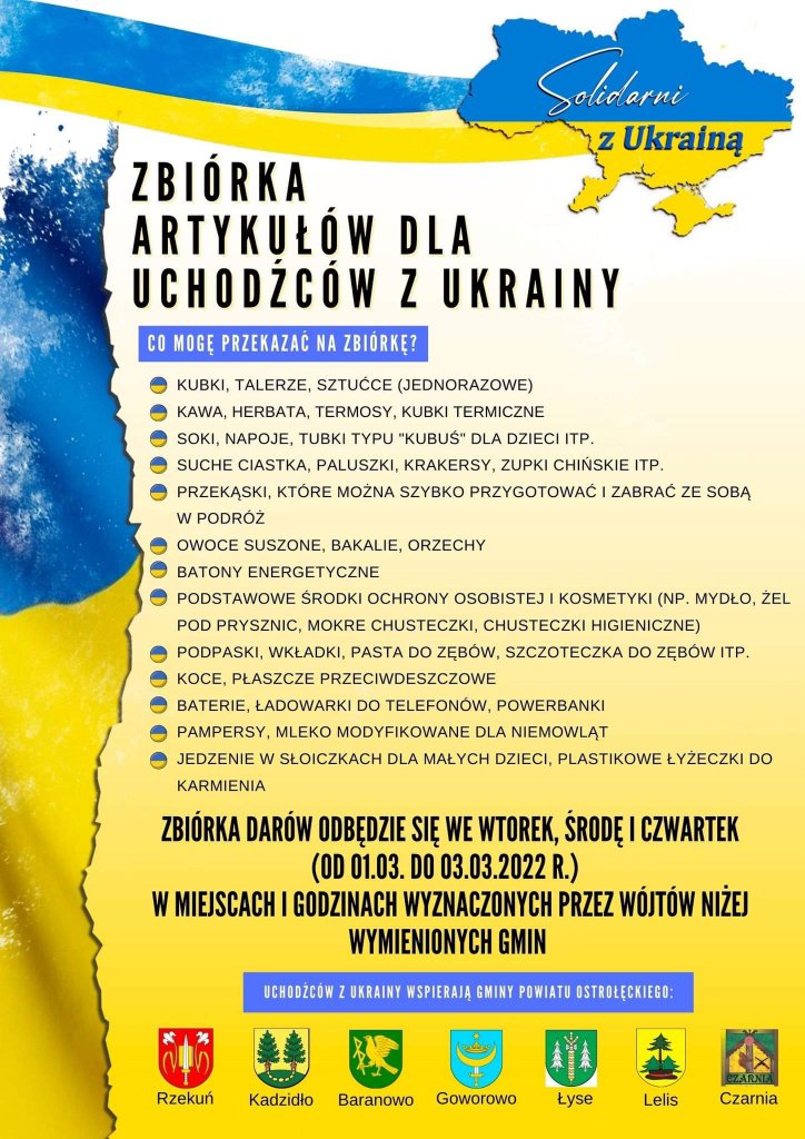 Strażacy z Łęgu Przedmiejskiego dołączyli do akcji pomocowej dla uchodźców z Ukrainy. Na potrzebne produkty (lista na plakacie) czekają w remizie - od poniedziałku do czwartku w godz. 16.00-20.00.