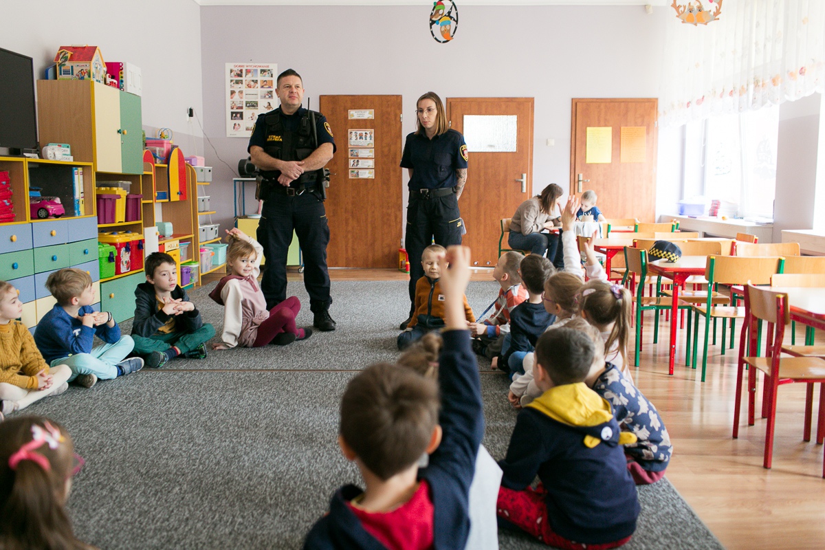 Forma przekazu i pomoce dydaktyczne były dostosowane do poszczególnych grup wiekowych. W ramach zajęć odbyła się m.in. ciekawa pogadanka na temat bezpiecznej drogi do przedszkola i do domu. Strażnicy przybliżyli ważne znaki informujące, w których miejscach należy przechodzić przez jezdnię.