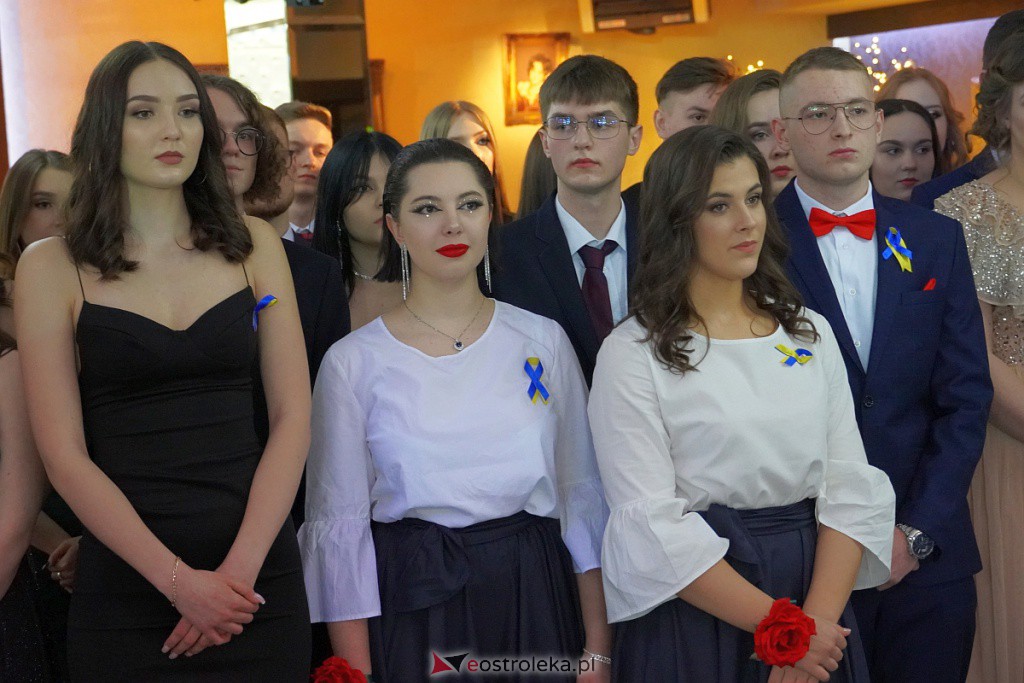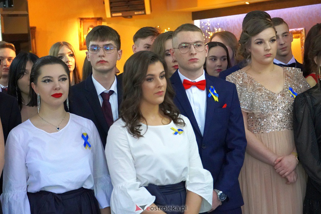 Mimo szampańskich nastrojów uczniowie oraz dyrekcja nie zapomnieli o sytuacji za naszą wschodnią granicą, każdy uczestnik studniówki miał dziś wpięty kotylion w niebiesko-żółtych barwach na znak solidarności z Ukrainą.