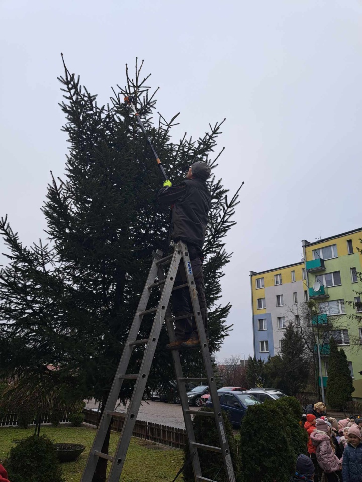 Przedszkolaki z “jedynki” wspólnie z pracownikami Spółdzielni Mieszkaniowej “Centrum” od wielu już lat spotykają się przed świętami Bożego Narodzenia by przystroić choinki i teren przed przedszkolem. Tradycję podtrzymano także w tym roku.