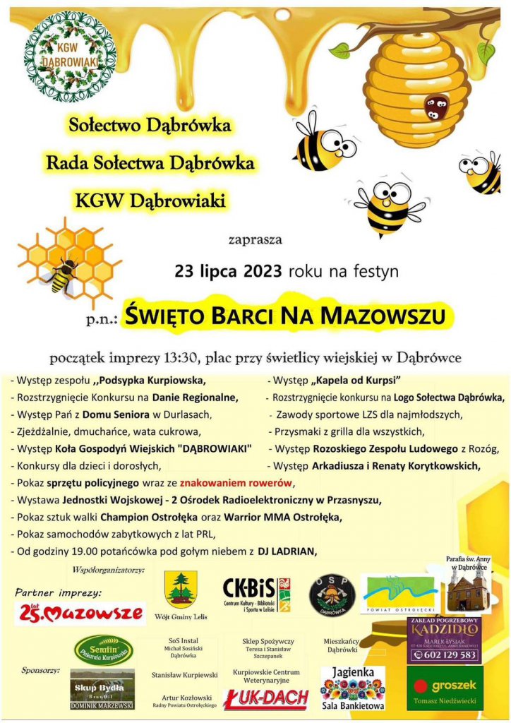 Sołectwo Dąbrówka, Rada Sołecka oraz lokalne Koło Gospodyń Wiejskich zapraszają na festyn "Święto Barci na Mazowszu".