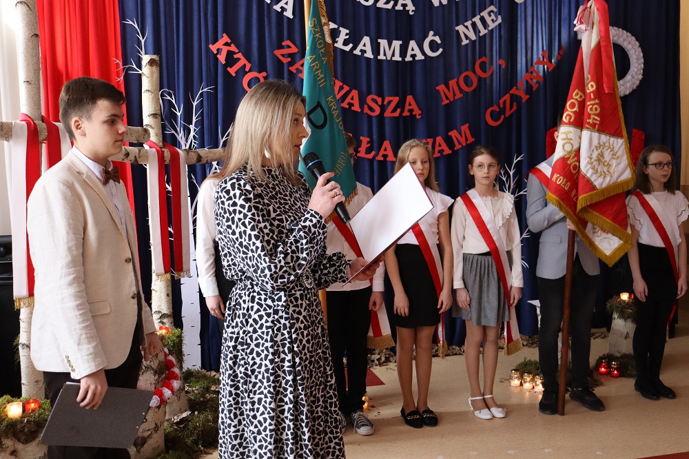 10 marca 2023 r. społeczność Szkoły Podstawowej im.Armii Krajowej w Drwęczy obchodziła Dzień Patrona. To niezwykle ważne wydarzenie. W szczególny sposób został wyrażony hołd wszystkim, którzy zostawili ślad w dziejach naszej ojczyzny, służąc jej z oddaniem, honorem i miłością - bohaterskim żołnierzom AK.