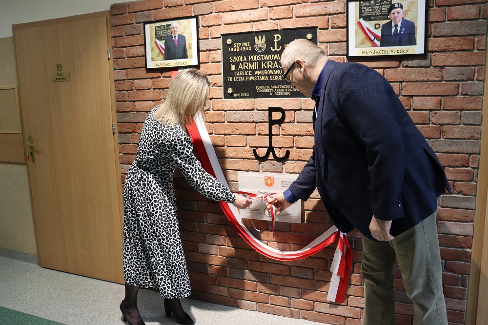 Po wprowadzeniu Sztandarów: Szkoły Podstawowej i Armii Krajowej w Drwęczy oraz Światowego Związku Żołnierzy Armii Krajowej został odśpiewany hymn Polski. Następnie została odsłonięta pamiątkowa tablica, którą szkoła otrzymała od Władz Gminy Rzekuń. W imieniu Wójta Gminy Bartosza Podolaka uroczystego odsłonięcia dokonał Sekretarz Gminy - Krzysztof Żebrowski oraz dyrektor szkoły Ewa Szatanek.