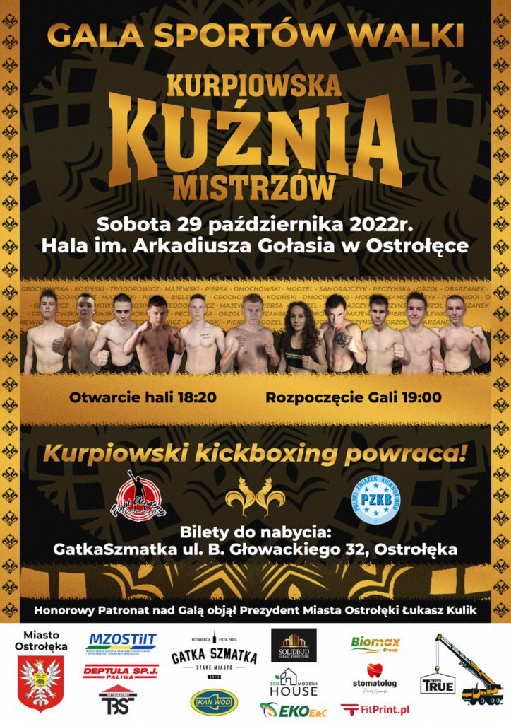 Ponadto o godzinie 10:00 wystartuje liga sportów walki Kurpiowska Kuźnia Mistrzów. W ramach tej inicjatywy zaplanowano 26 zestawień w boksie oraz K1, również z ostrołęckimi akcentami. Wstęp na ligę jest bezpłatny. Główna Gala Kurpiowska Kuźnia Mistrzów rozpocznie się o godzinie 19:00. Bilety do nabycia w Restauracji GatkaSzmatka ul. B. Głowackiego 32 w Ostrołęce.