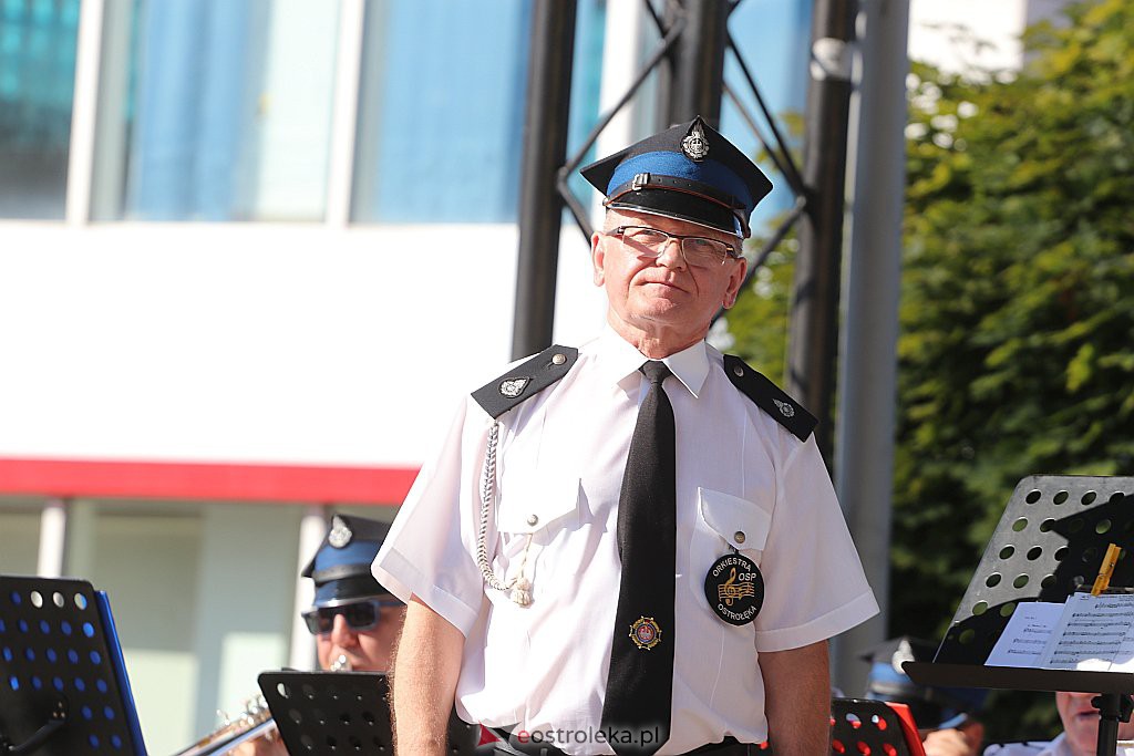Orkiestra dęta OSP w Ostrołęce zagrała dla przybyłych gości wiele pieśni patriotycznych, doskonale wpisujących się w obchody Święta Wojska Polskiego i 100. rocznicy Bitwy Warszawskiej.