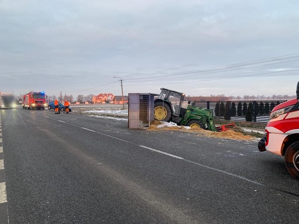 Do kłopotliwej kolizji skutkującej blokadą „krajówki” doszło w poniedziałek, 24 stycznia przed godziną 7:00 w miejscowości Somianka. Z ustaleń policjantów wynika, że 34-letni kierowca ciężarówki nie dostosował prędkości do warunków panujących na drodze i uderzył przyczepy ciągnika rolniczego. W wyniku uderzenia ciągnik rolniczy zjechał na przeciwległy pas ruchu i zderzył się z jadącym z naprzeciwka peugeotem kierowanym przez 30-letniego mieszkańca gminy Obryte. Następnie osobówka oraz maszyna rolnicza wpadły do przydrożnego rowu. Przyczepa, wywróciła się, a przewożone w nich zwierzęta uciekły.