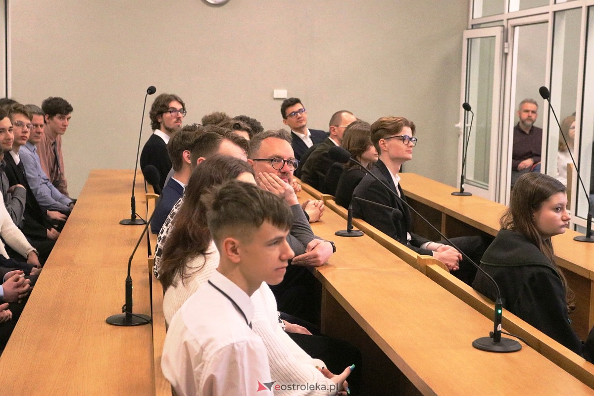 W związku z finałem XXV edycji Ogólnopolskiej Olimpiady Wiedzy o Prawie, ostrołęccy uczniowie przygotowali symulowaną rozprawę karną, którą przeprowadzili w Sądzie Okręgowym w Ostrołęce. Sąd musiał zdecydować o losie oskarżonych o usiłowanie kradzieży konsoli ze sklepu.