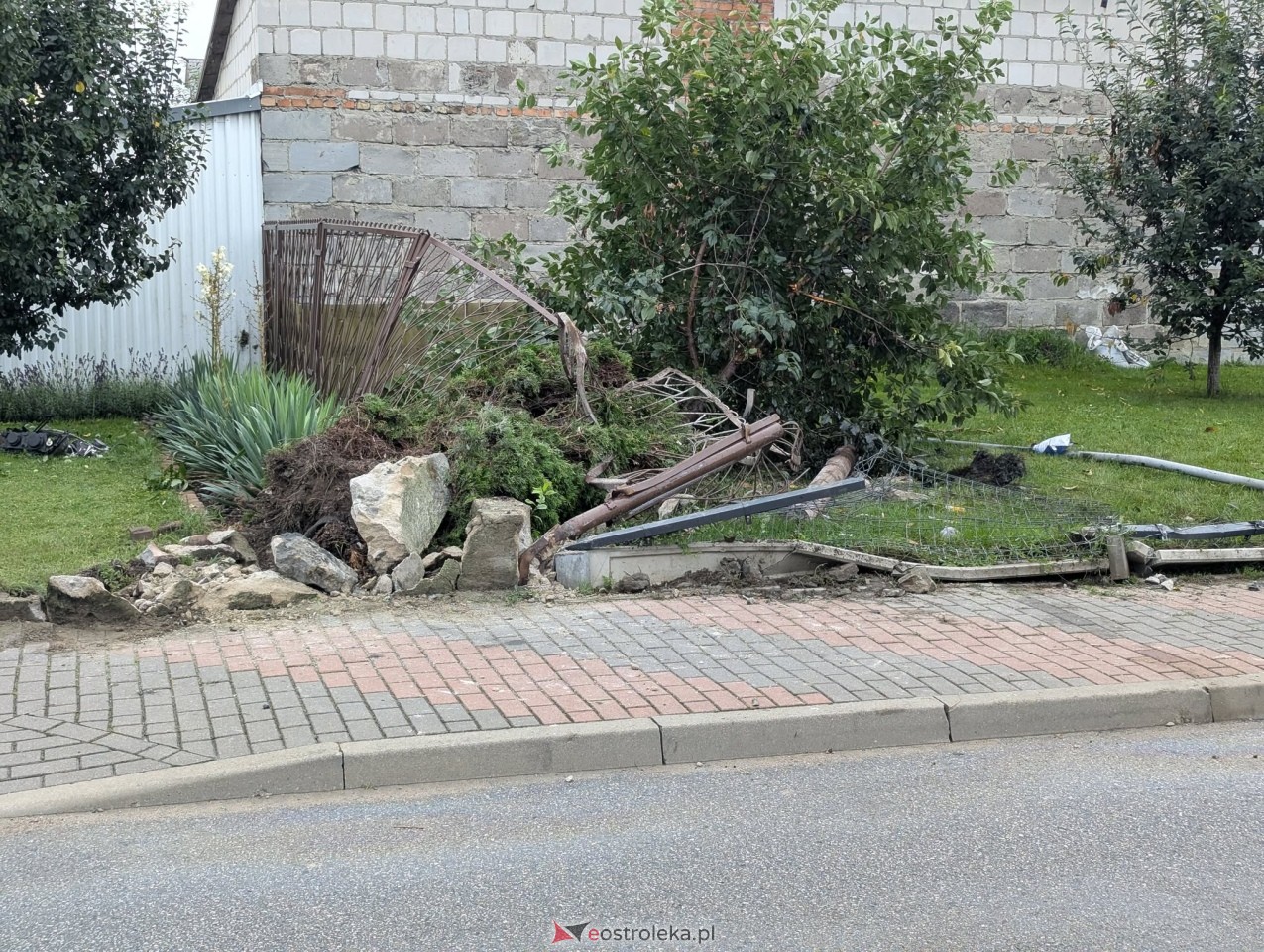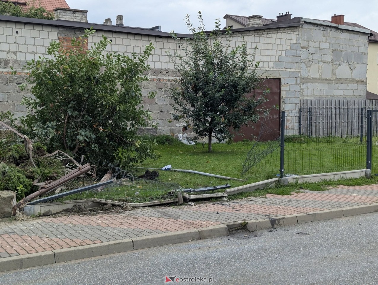 Ostrołęka, osiedle Stacja – to tutaj dziś rano mieszkańcy z przerażeniem obserwowali skutki szaleńczego rajdu, który tylko cudem nie zakończył się tragedią. Na ulicy Kaczyńskiej, w bezpośrednim sąsiedztwie przedszkola i przystanku autobusowego, doszło do poważnego incydentu drogowego. Zniszczona została konstrukcja ogrodzenia prywatnej posesji oraz znaki drogowe, w tym tablica informacyjna przystanku z rozkładem jazdy.