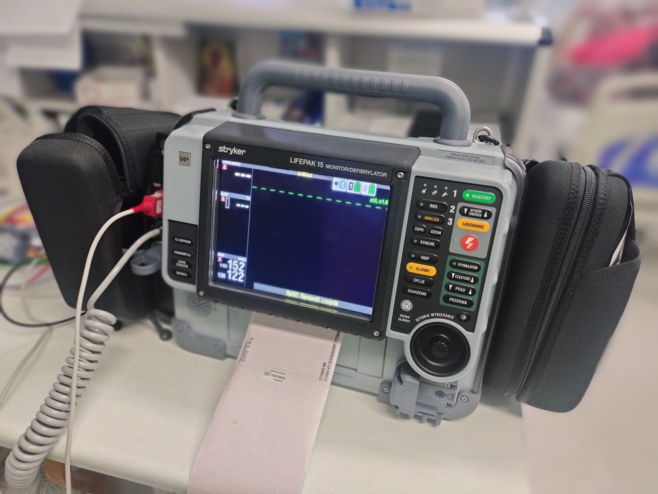 - System stanowisk resuscytacyjnych - defibrylator (1 szt.) - niezbędny do resuscytacji krążeniowo-oddechowej w przypadku zatrzymania akcji serca.