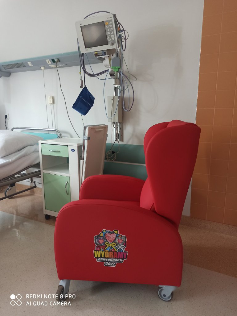 Fotele ASTER odchylane z podnóżkiem dla rodziców ustawiono na Oddziale Neonatologiczny, natomiast lampy czołowe diodowe HEINE ML4 LED UNPLUGGED z dodatkowym wyposażeniem trafiły na Oddział Otolaryngologiczny.