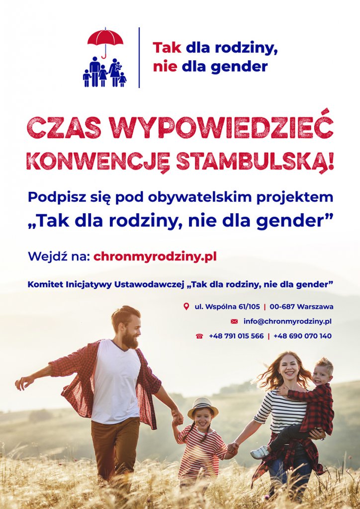 Co proponuje się w miejsce genderowej Konwecji stambulskiej? - Już najwyższy czas, by Polska stała się państwem, które aktywnie stanie w obronie rodziny na forum międzynarodowym. Dlatego projekt ustawy nie tylko uprawnia polski rząd do wypowiedzenia Konwencji stambulskiej, ale także zobowiązuje do opracowania rozsądnej alternatywy! Jest nią międzynarodowa Konwencja Praw Rodziny - informują pomysłodawcy projektu.