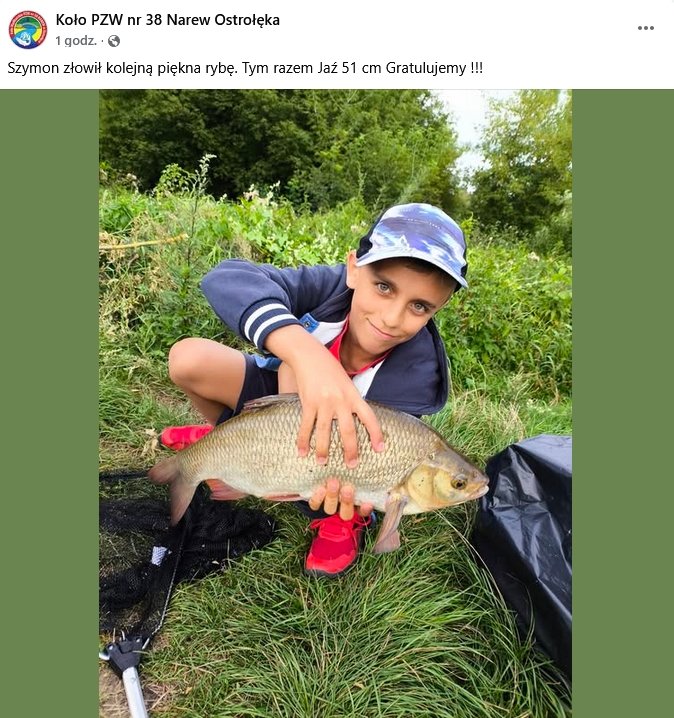 Koło pochwaliło się dziś kolejnym wyczynem młodego wędkarza. Szymon nie spoczął na laurach i złowił kolejną rybę, która robi wrażenie. Tym razem to 51-centymetrowy jaź. "Gratulujemy" - piszą mu starsi koledzy z koła. Trzeba przyznać, że jak na tak młody wiek, to dokonania wędkarskie Szymona są znakomite. Widać, że tak rodzi się prawdziwa pasja do wędkarstwa. Nic, tylko dołączyć się do gratulacji.