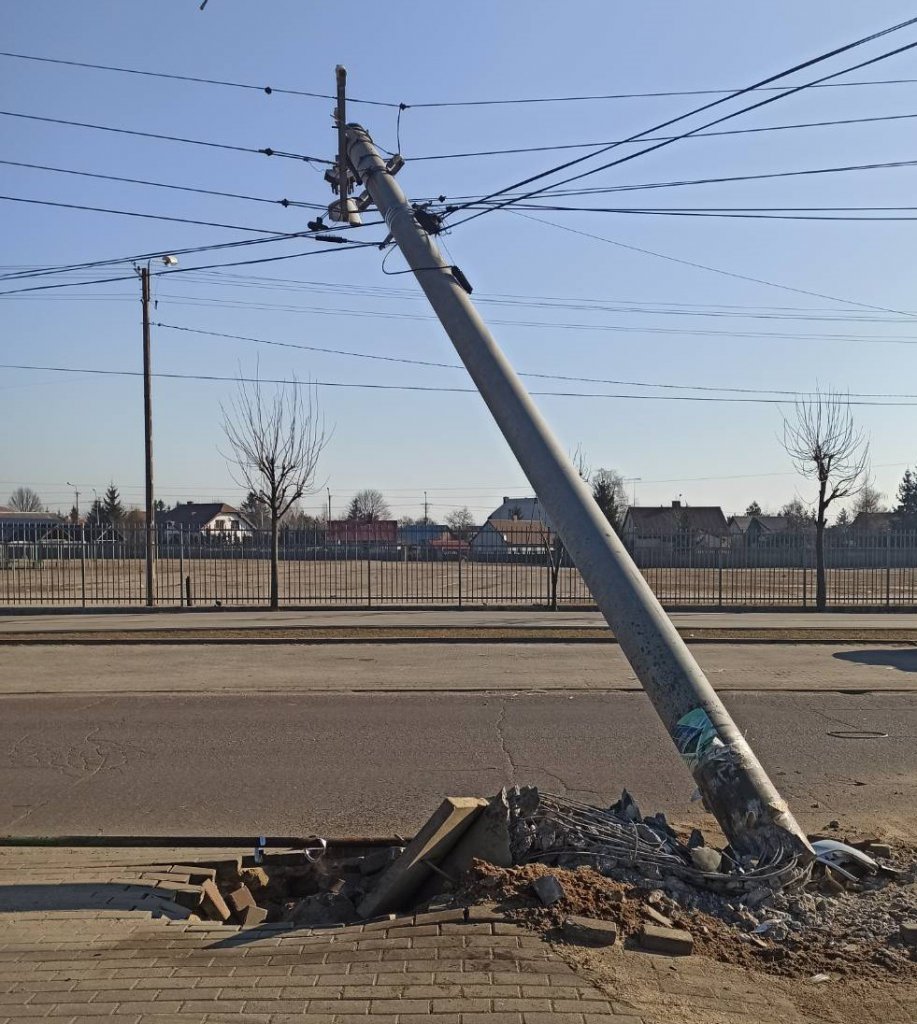 Do wypadku doszło w niedzielny poranek przy ulicy Broniewskiego w Ostrowi Mazowieckiej. Kierujący osobówką z ogromnym impetem uderzył w betonowy słup trakcji elektrycznej. Siła uderzenia był tak duża, że słup przechylił się niebezpiecznie w kierunku ulicy.