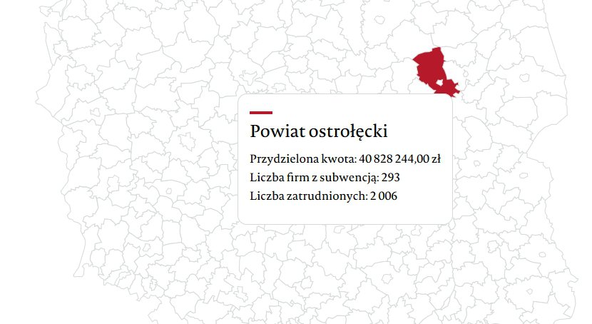 W powiecie ostrołęckim subwencję uzyskały 293 firmy, które zatrudniają 2006 pracowników. Przydzielona kwota to ponad 40 milionów złotych, dokładnie 40 828 244,00 zł.