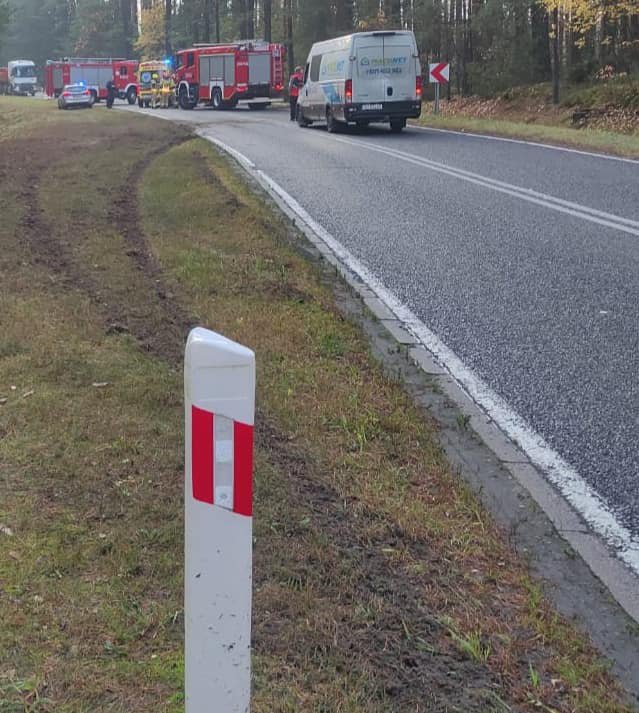 Około godziny 7:40 kierujący fordem 24-letni mieszkaniec województwa podlaskiego w wyniku niedostosowania prędkości do warunków panujących na jezdni, stracił panowanie nad pojazdem i zjeżdżając na pobocze doprowadził do dachowania. W wyniku zdarzenia kierowca i jego pasażerka, 46-letnia kobieta, doznali obrażeń i zostali zabrani do szpitala.