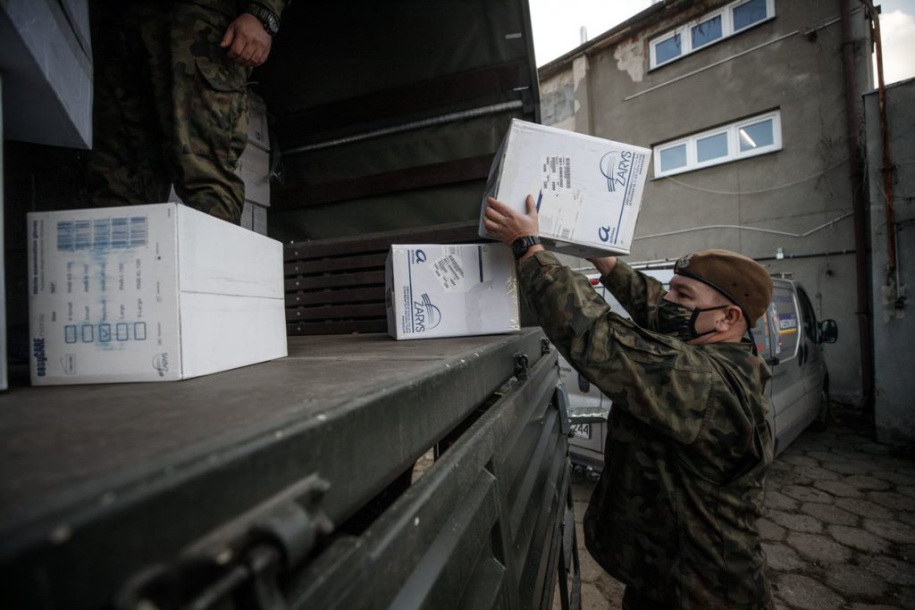 Od poniedziałku do szpitali i placówek medycznych dostarczają również środki ochrony indywidualnej. Zadanie to realizowane jest na wniosek Mazowieckiego Urzędu Wojewódzkiego w Warszawie.