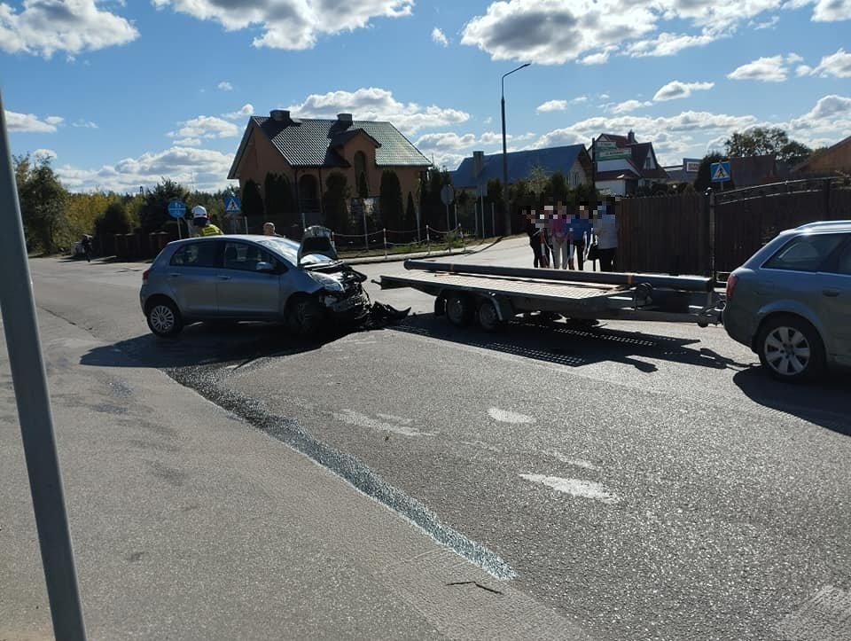 Niebezpieczna kraksa w Myszyńcu. Za wymuszenie pierwszeństwa skutkujące kolizją sprawca ukarany mandatem.