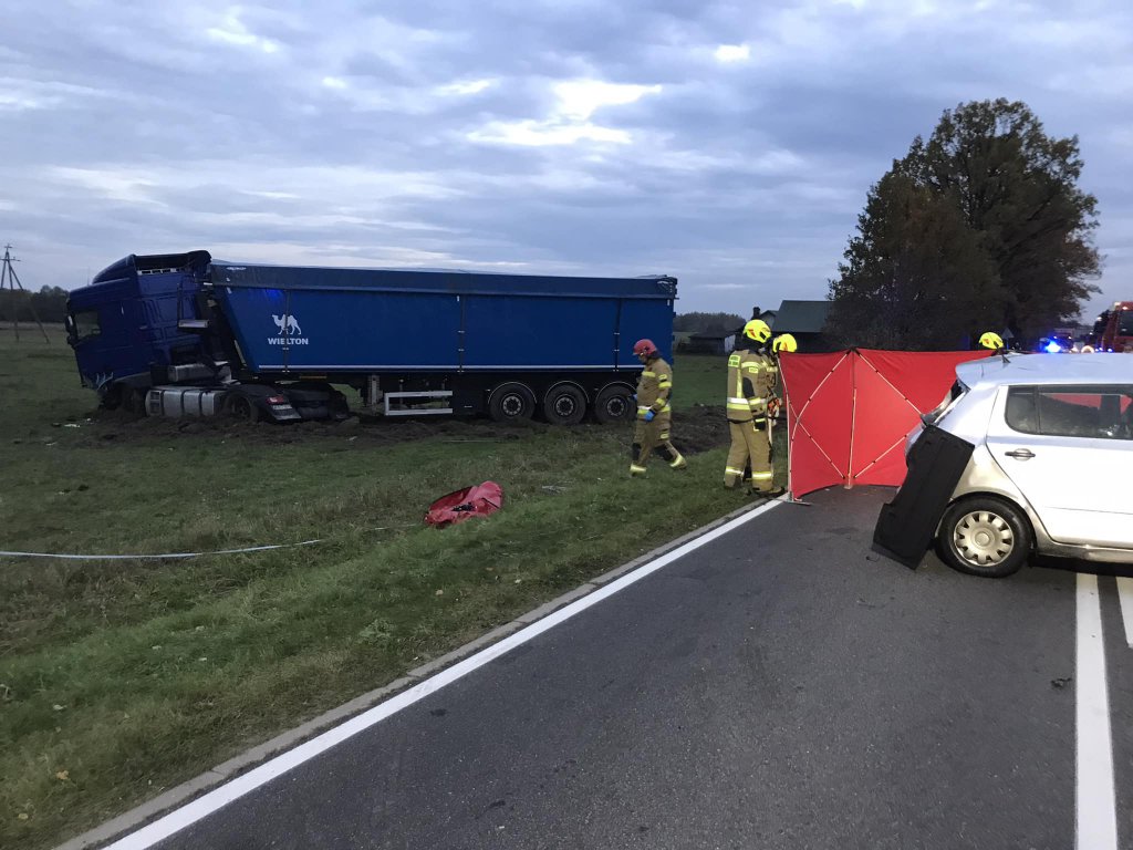 Do wypadku doszło na drodze wojewódzkiej nr 694 w miejscowości Poręba. W wyniku zderzenia ciężarówki i osobowej skody śmierć na miejscu poniósł kierowca osobówki. Kierujący ciężarówką wyszedł bez szwanku.