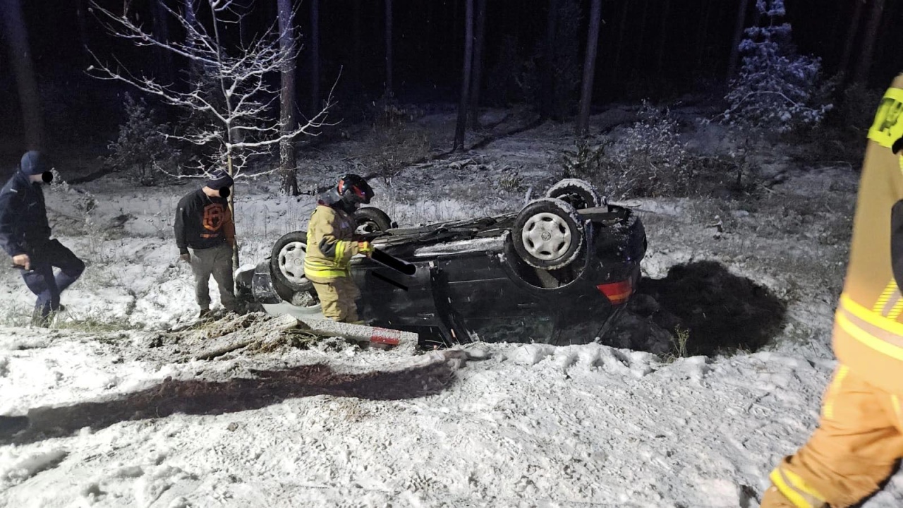 Autem, które dachowało kierowała 25-letnia mieszkanka powiatu łomżyńskiego. Kobieta jechała wspólnie z pasażerem. Z policyjnych ustaleń wynika, że kierująca nie dostosowała prędkości i stylu jazdy do warunków panujących na drodze. Auto wpadło w poślizg, zjechało na pobocze i dachowało.