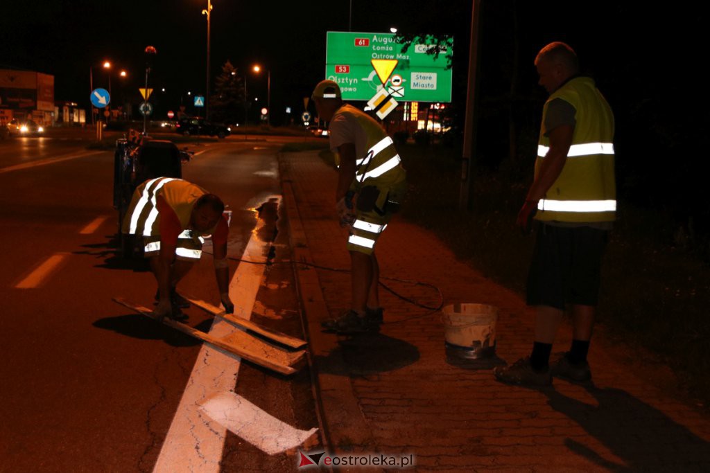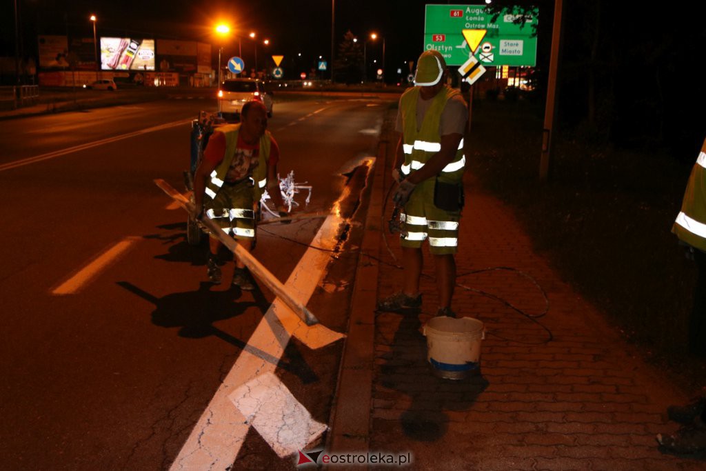 Uwaga kierowcy! W godzinach nocnych na ulicach Ostrołęki pracuje ekipa drogowców malujących pasy na jezdniach. Mogą być utrudnienia w ruchu.