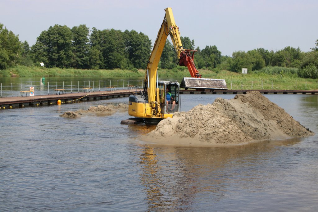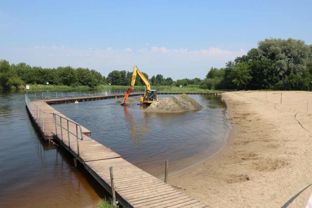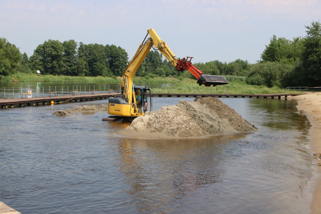 Pogłębianie kąpieliska miejskiego na plaży potrwa do jutra. Przeprowadzenie prac jest konieczne ze względu na obniżający się poziom wody w Narwi.